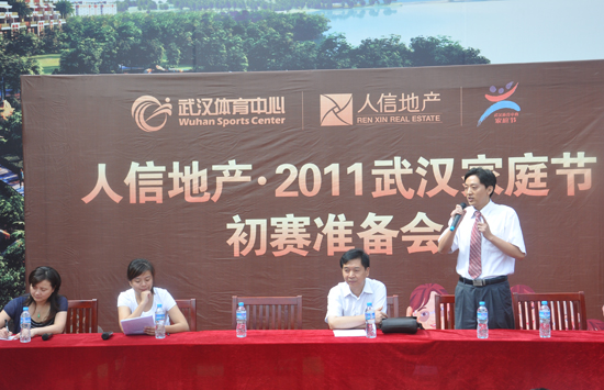 8月27日, “人信地產·2011武漢家庭節”活動準備會在人信·太子灣營銷中心前廣場隆重舉行。此次盛會由人信地產、武漢體育中心共同主辦,近百組家庭節參賽選手出席。