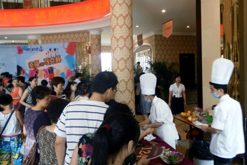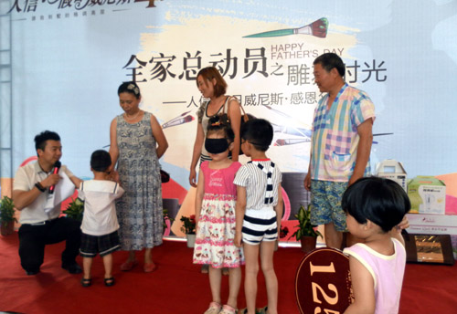 沉浸在濃濃的溫馨與溫情之中,滿滿的都是愛。6月16日為迎接2012年父親節,人信·假日威尼斯營銷中心內一場別開生面主題為《全家總動員之雕刻時光——感恩父親季》親子派對活動幸福開啟,所有到場新老客戶及孩子們在這里共同歡度過了一個愉快周末;顒赢斕,現場吸引100余組家庭全家大小一起出動。人信·假日威尼斯特邀糕點師現場為客戶烘焙蛋撻、西點等供來賓品嘗,精心準備水果沙拉、果汁涼茶等也是全程相伴。