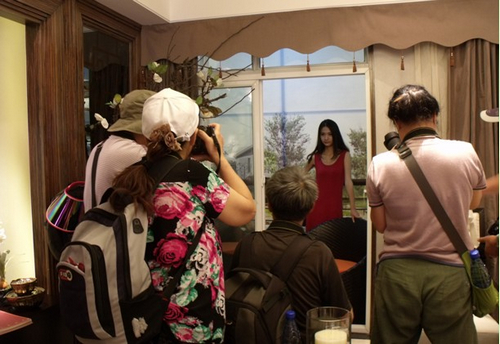 在營銷中心大廳置業顧問為本次攝影大賽團隊統一介紹了片區的規劃和人信·千年美麗項目情況,攝影愛好者們已迫不急待的要親眼鑒證,大家快速的整理好攝影裝備后,在工作人員的帶領下到首先參觀了本次首開的新品洋房樣板間。樣板間內隨行模特肆意擺出各類造型,優雅姿勢與新品樣板的靈動空間完美融合,大家樓上樓下自由取景,玩得不亦樂乎。
